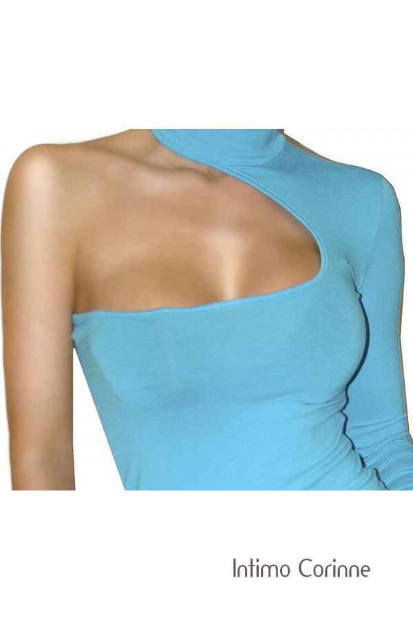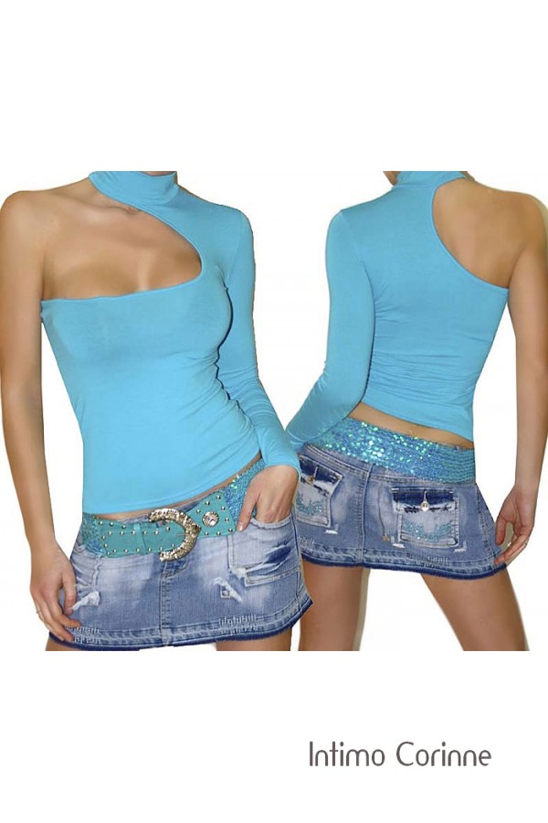 • Maglietta monospalla azzurra.