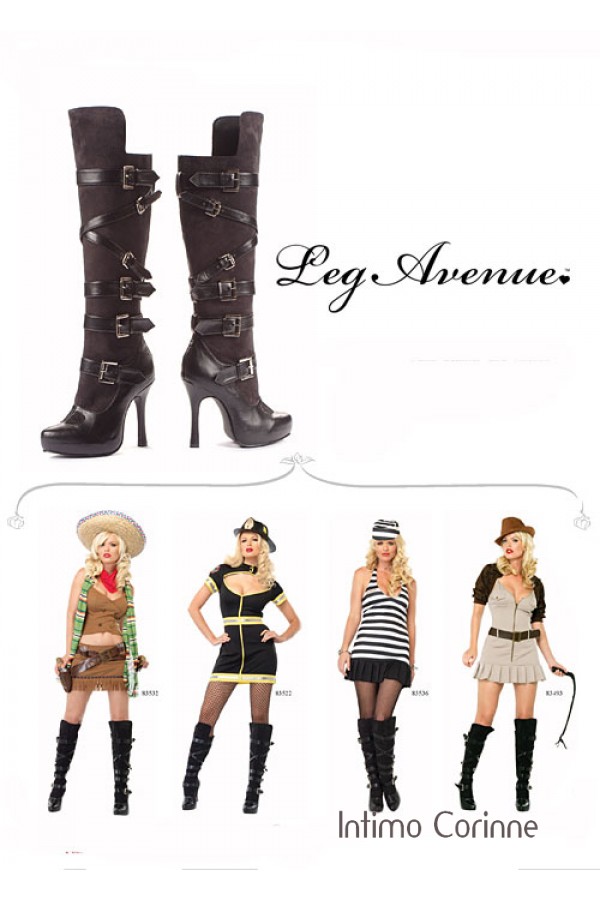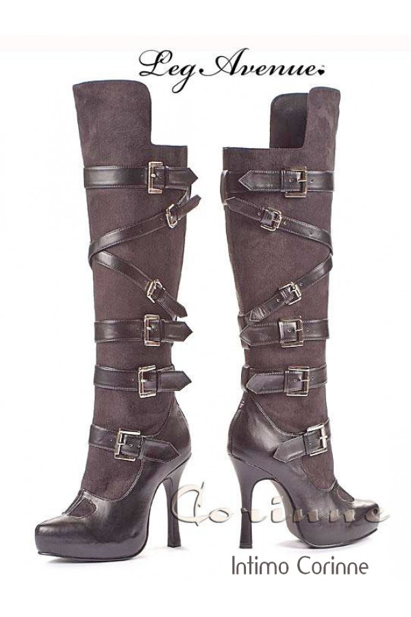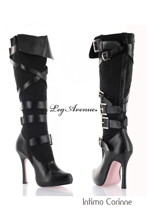Stivali neri in ecopelle con parti in microfibra, fibbie regolabili e cerniera interna.