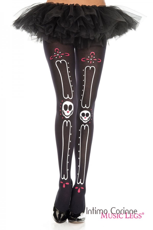 • Music Legs: collant con disegno ossa e teschi messicani.