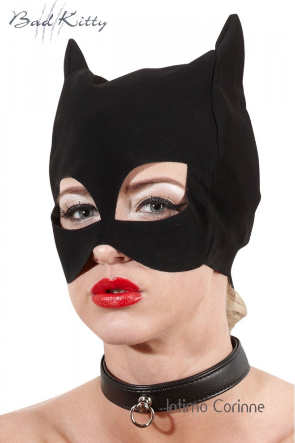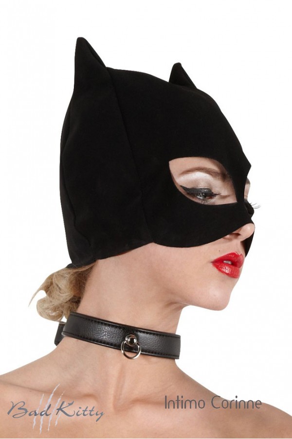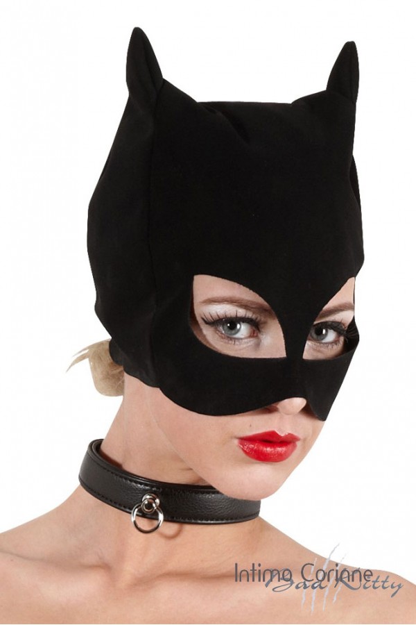 Maschera da sexy gatta nera opaca, in finto nubuk, vellutata con orecchie a punta e bocca libera (per fare le fusa...). Taglia unica. Per un look selvatico ed intrigante!