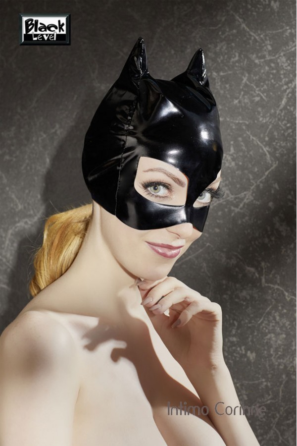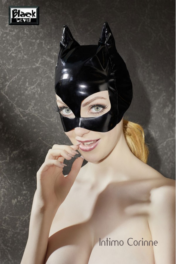 Maschera da sexy gatta con piccole orecchie e grandi aperture per gli occhi. Materiale elastico aderenterente. Colore nero laccato. Taglia unica.