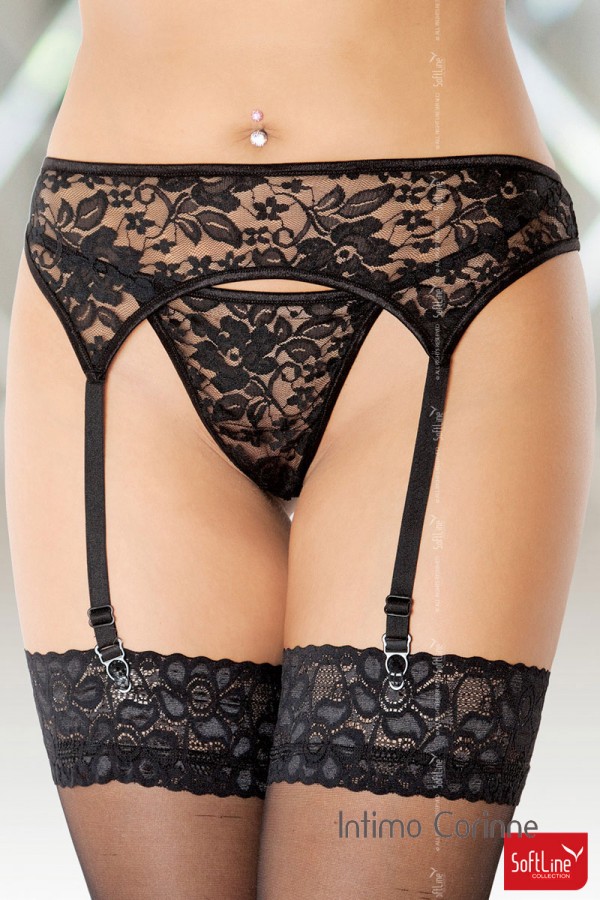 Softline - Reggicalze e perizoma in pizzo. Nero