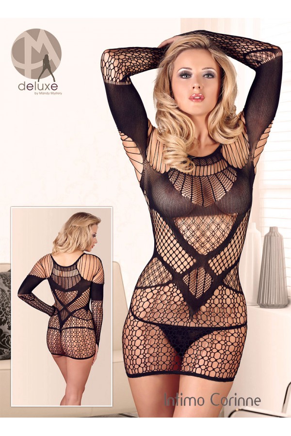 Mandy Mystery: miniabito a rete mista con maniche lunghe.