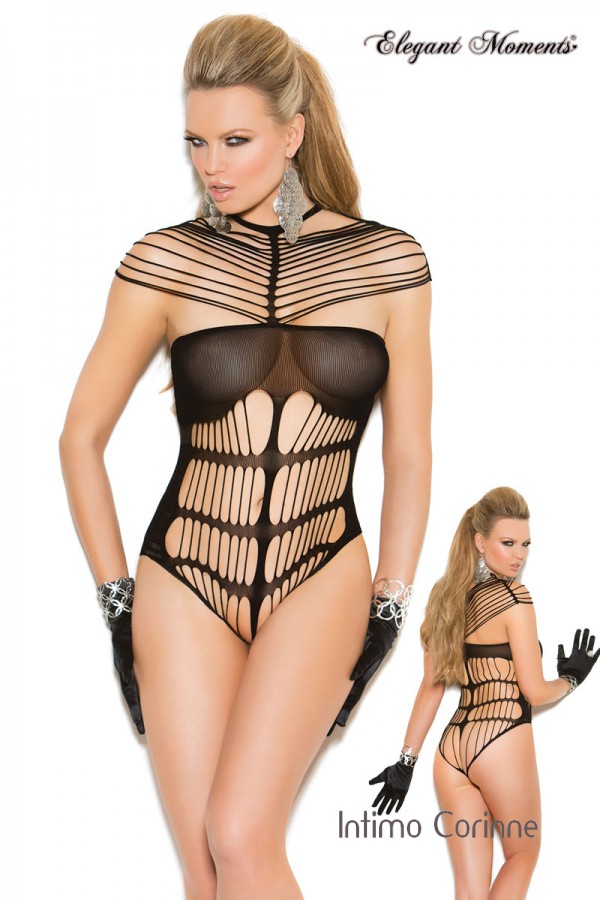 Body nero elasticizzato completamente stringato con coppe in tessuto coprente.