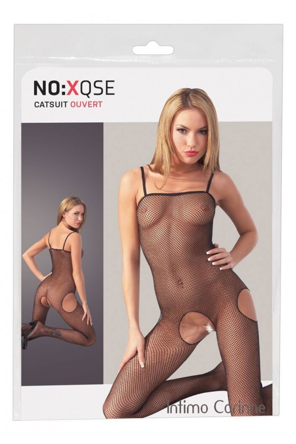 Catsuit a rete nera elasticizzata.