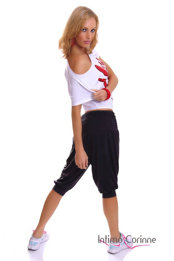 Morbidi pantaloni neri al ginocchio con fascia elastica in vita e cavallo basso.