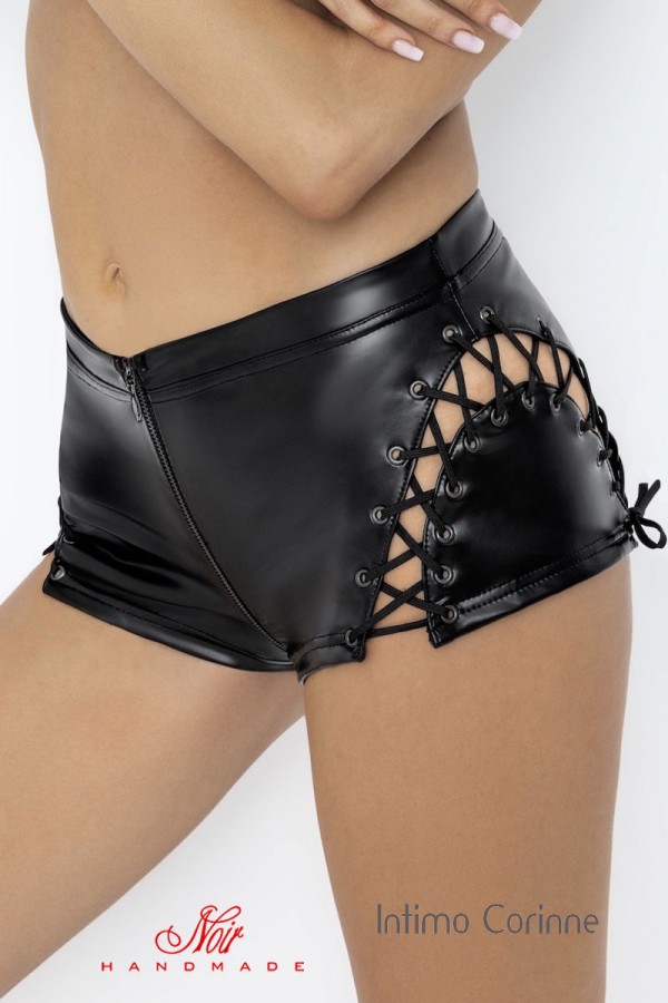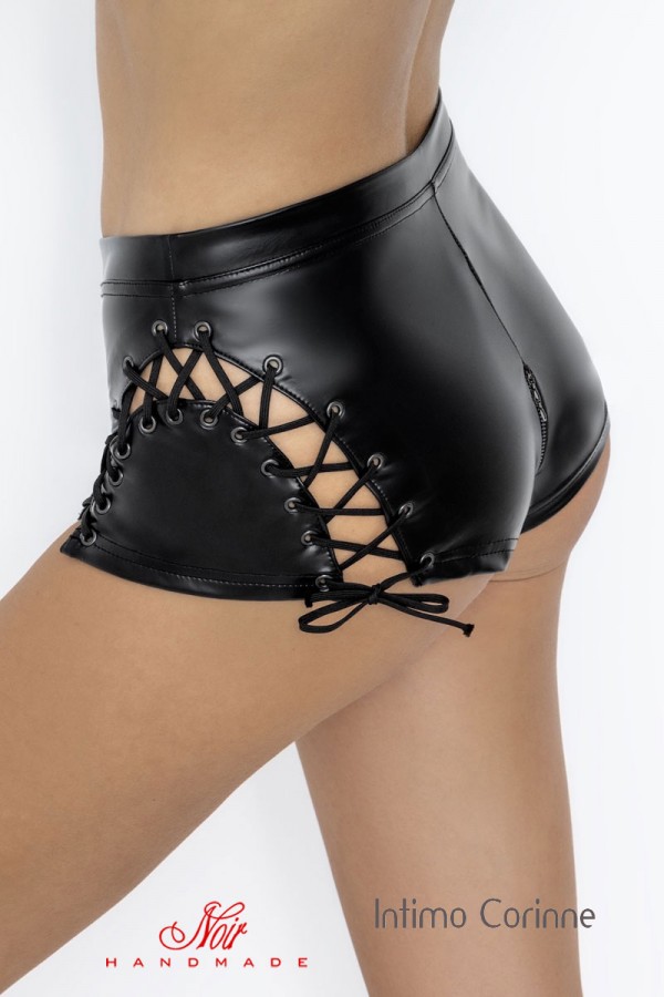 Pantaloncini in Powerwetlook con dettagli in pizzo.