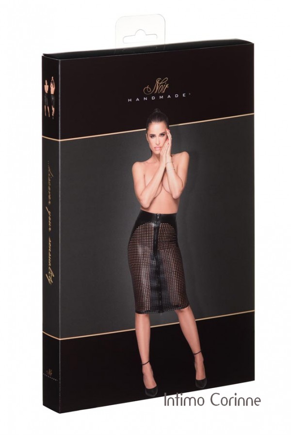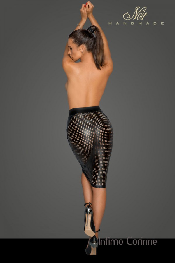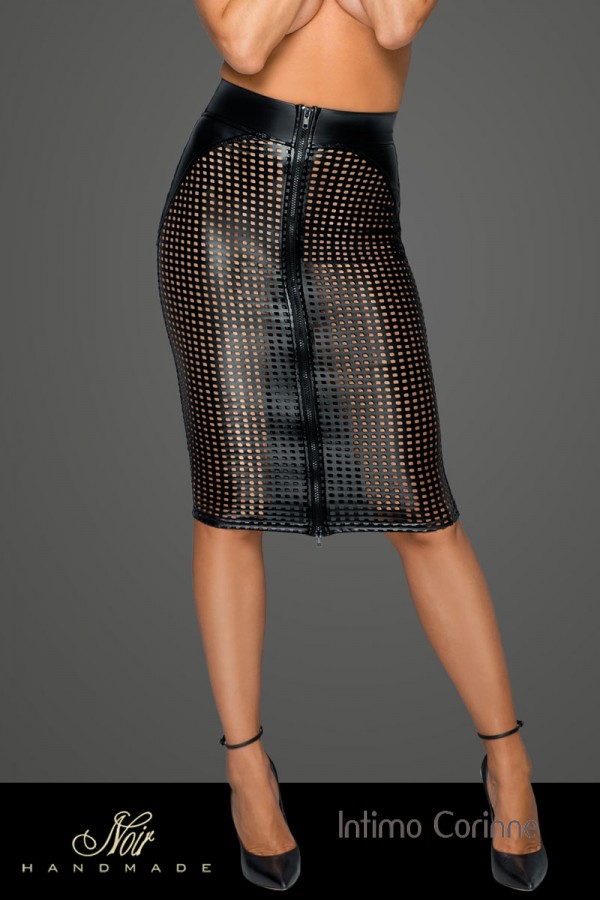 Fantastica gonna tagliata al laser con zip intera a doppio cursore anteriore. Un capo attraente e originale.
