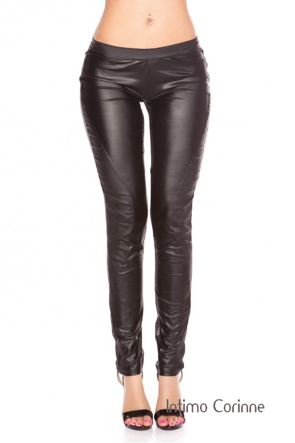 Pantaloni aderenti in similpelle con cerniera.