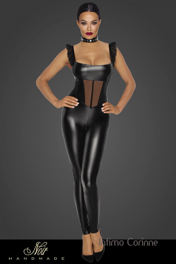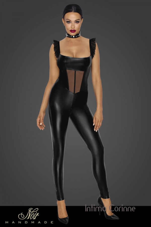 Tuta in tessuto Powerwetlook con inserto in tulle.