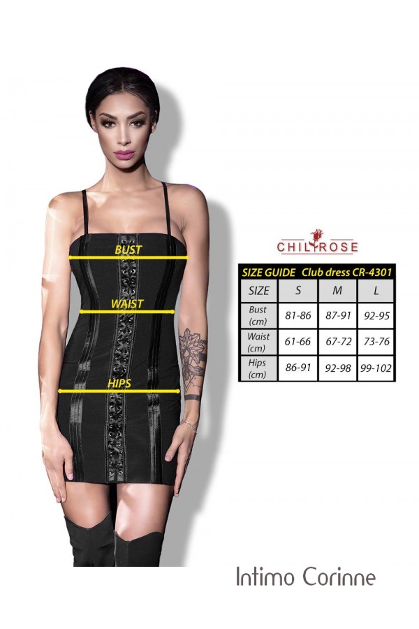 CHILIROSE: mini abito a tubino con stringatura frontale.