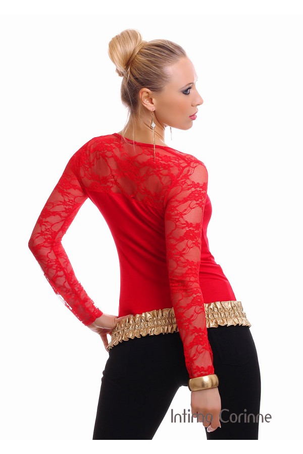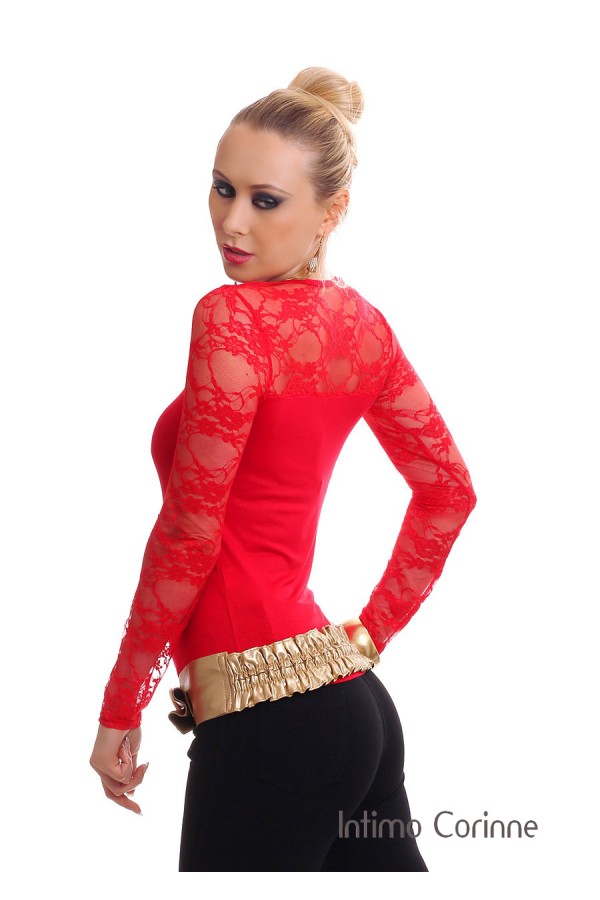 Shirt con maniche in pizzo. Rosso