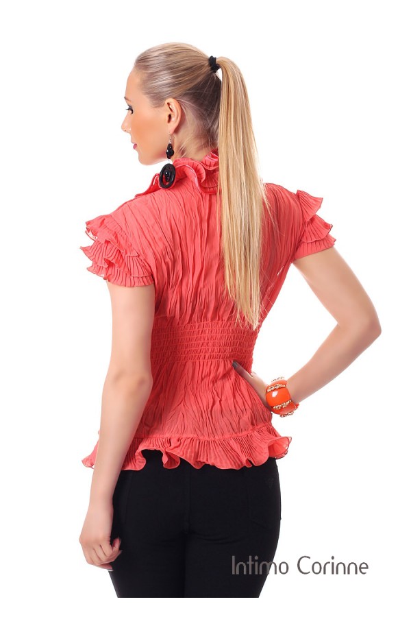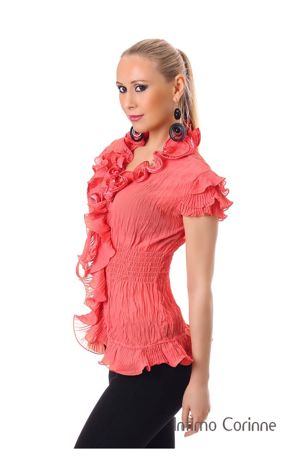 Camicetta con arricciature e volants. Corallo