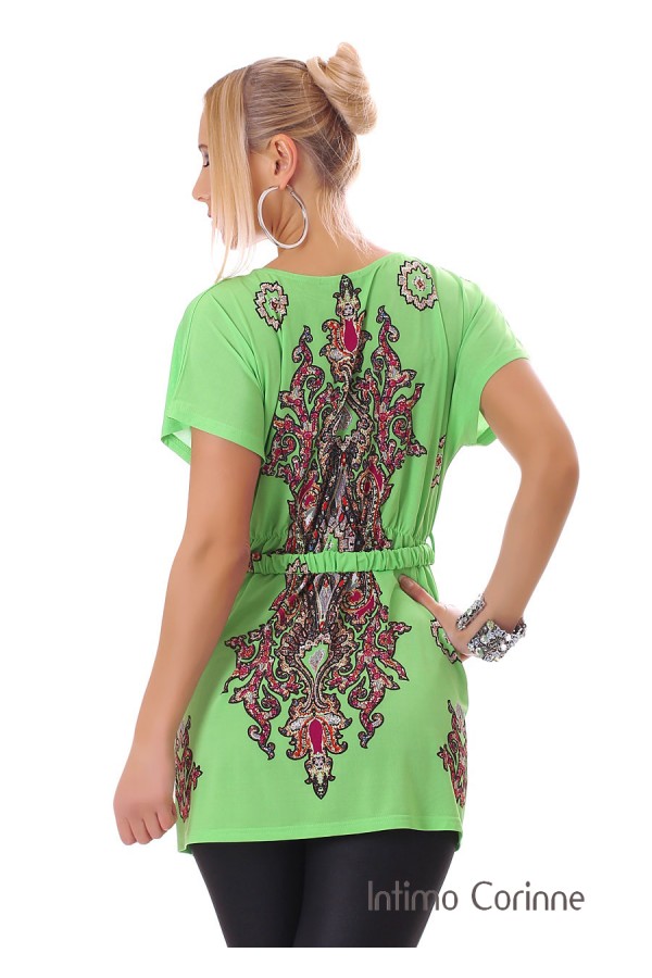 Blusa con motivi fantasia + cintura. Verde