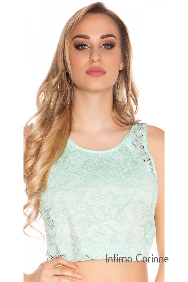 Top corto in pizzo floreale. Menta.