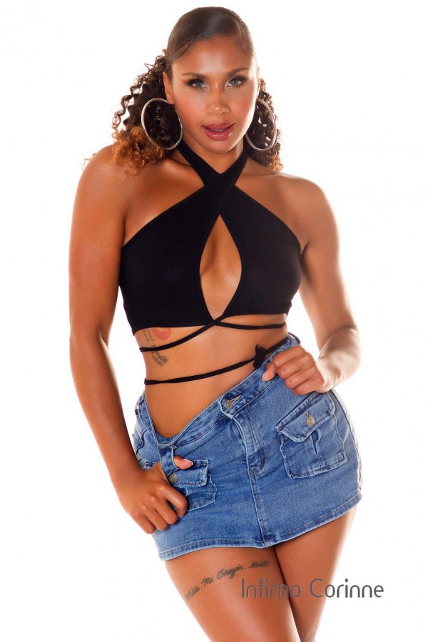 Crop Top Koucla ad incrocio. Nero
