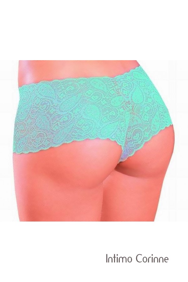 Culotte in morbido pizzo floreale elasticizzato. Colore lilla chiaro.