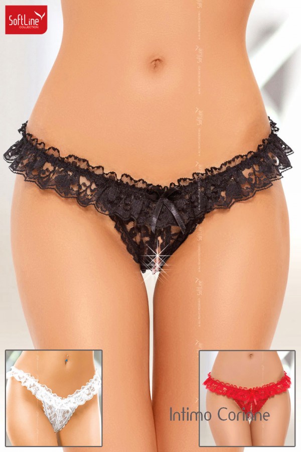 Softline - Tanga in pizzo con merletti e fiocchetto.