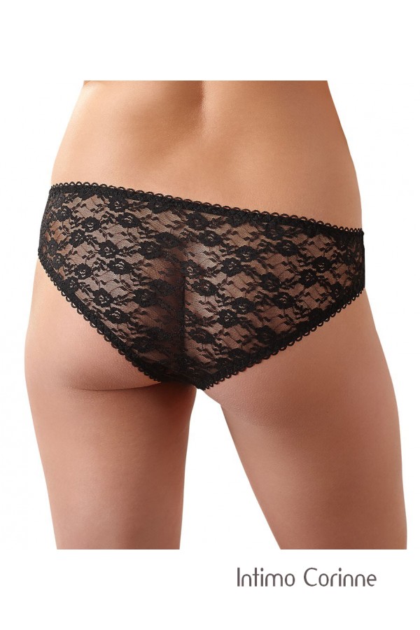 Slip in morbido pizzo elasticizzato con trama floreale abbellito da una stringatura a V frontale, molto sensuale...
