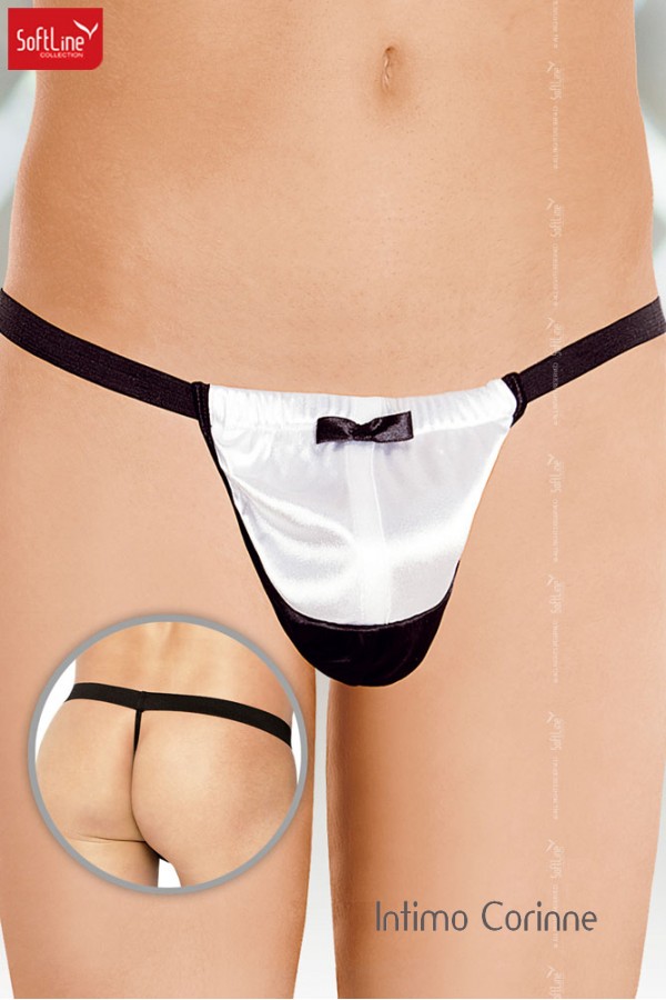 Simpatico perizoma motivo cameriere nero-bianco con piccolo papillon. Fianchetti elasticizzati.