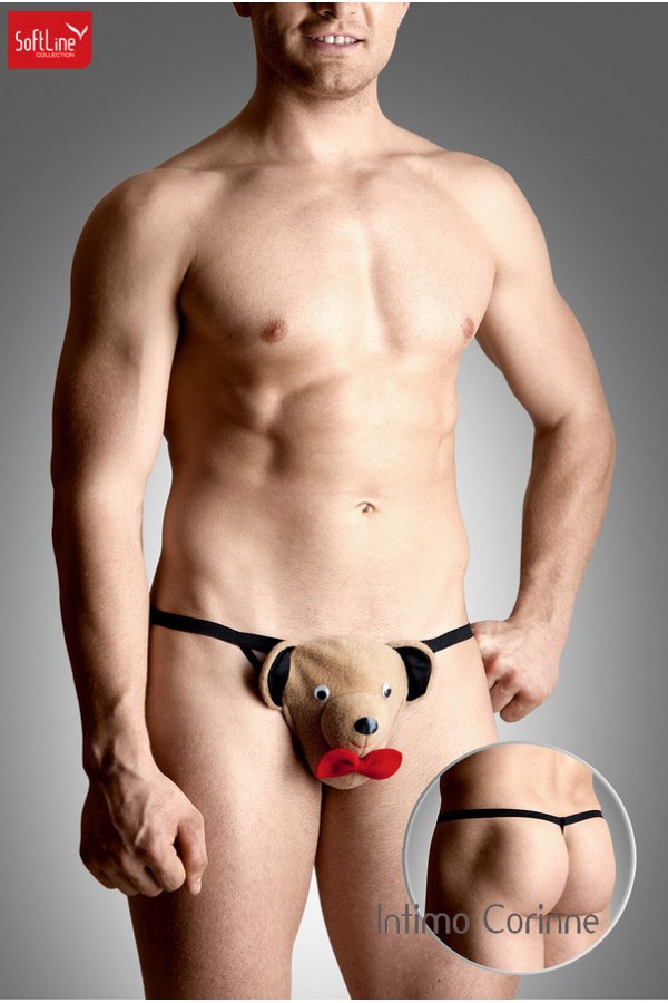 Simpatico perizoma raffigurante un orsetto di colore beige con papillon rosso. Un articolo particolarmente adatto per fare una divertente sorpresa alla partner o un simpatico regalo ad amici.