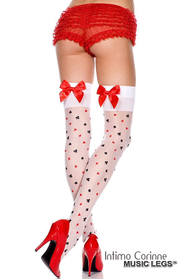• Music Legs: calze bianche con simboli carte e fiocchi rossi.