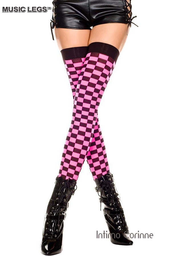 Calze a scacchi con balza elastica nera.