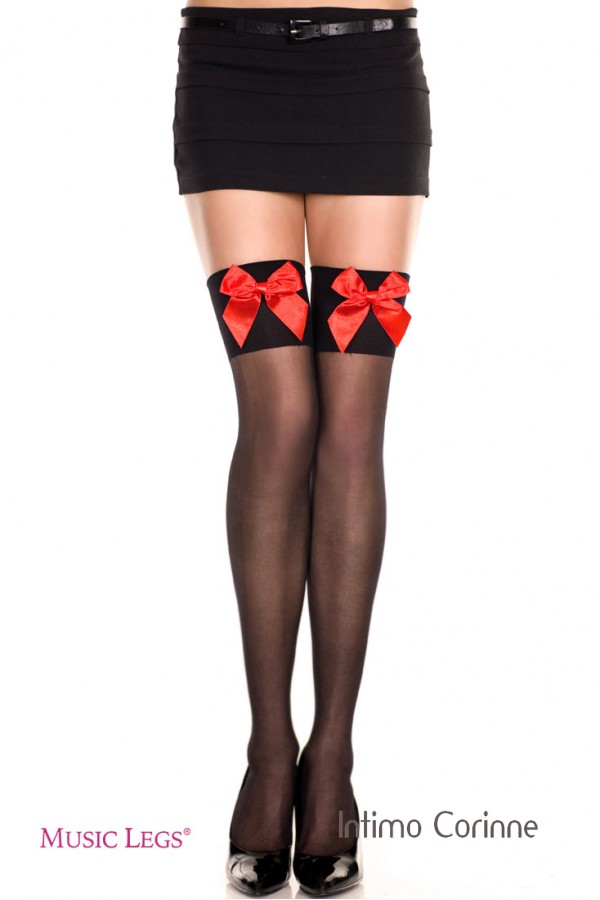 Calze velate con fiocco in raso nella parte anteriore della balza.