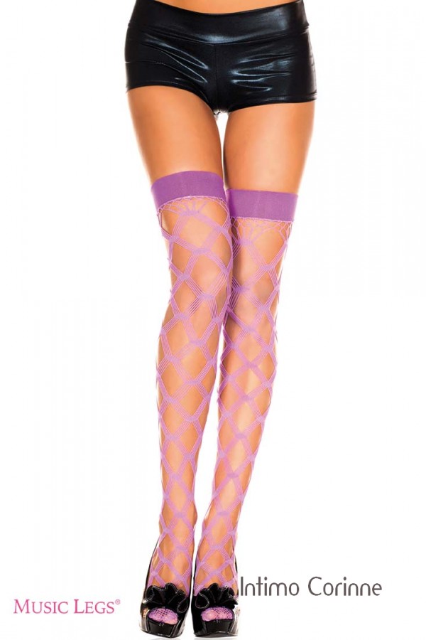Calze a rete a maglia larga con disegno romboidale a 5 fili e balza elastica. Punte rinforzate.