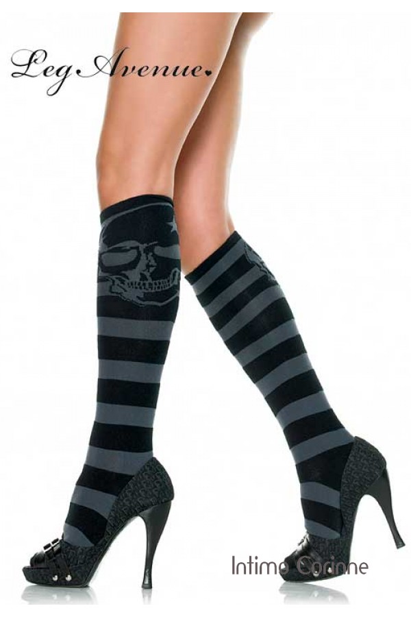Calze a strisce lunghe al ginocchio con disegno teschio.