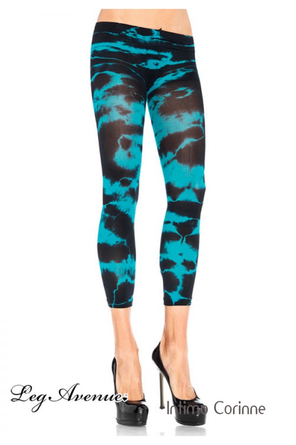 Pantacollant elasticizzato nero con motivi irregolari turchesi o rosa neon.