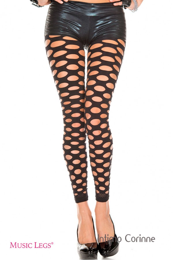 Pantacollant coprenti con numerosi intagli ovali e bordini traforati alle estremità.