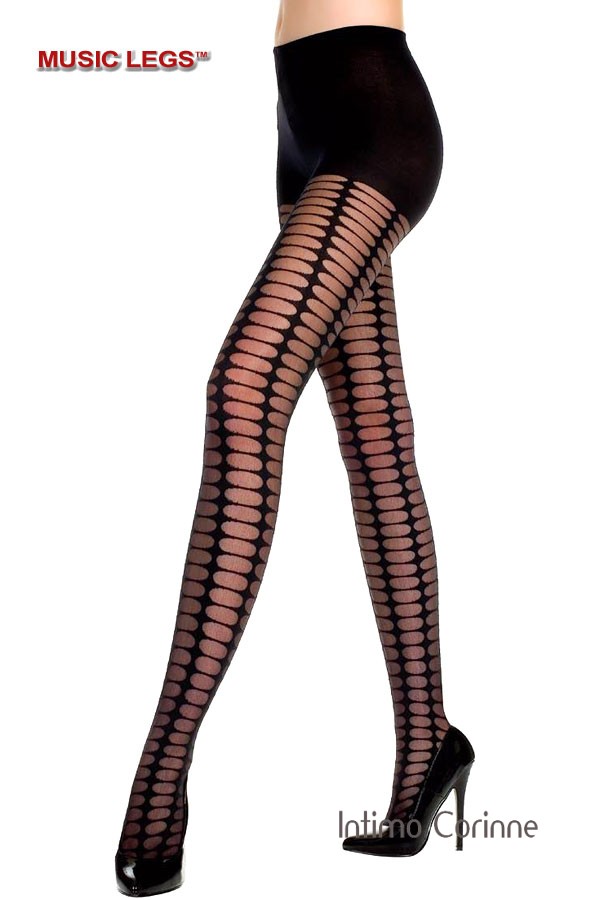 Confortevole collant nero raffigurante disegni ovali velati su tutta la gamba.