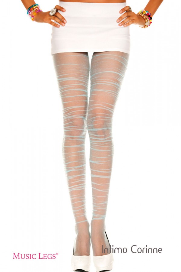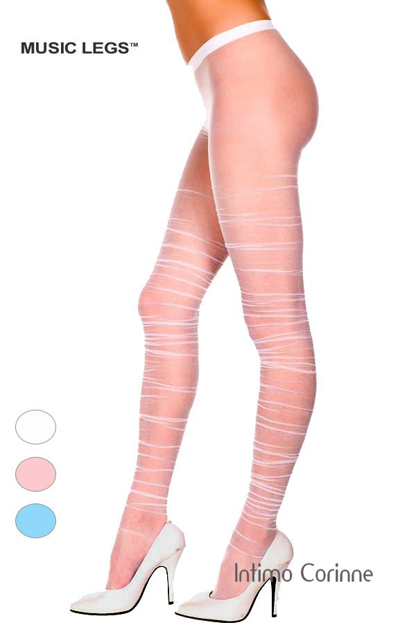 Collant velati caratterizzati da pieghettature irregolari del tessuto su tutta la lunghezza della gamba.