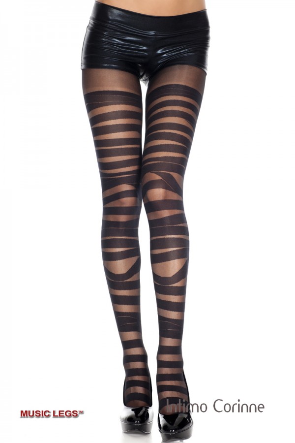 Originale collant nero elasticizzato con design a fasce orizzontali irregolari.