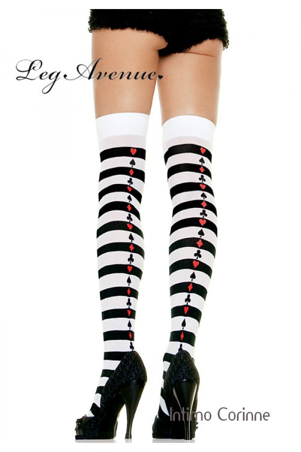 Calze a righe con semi di carte da gioco nella parte posteriore.