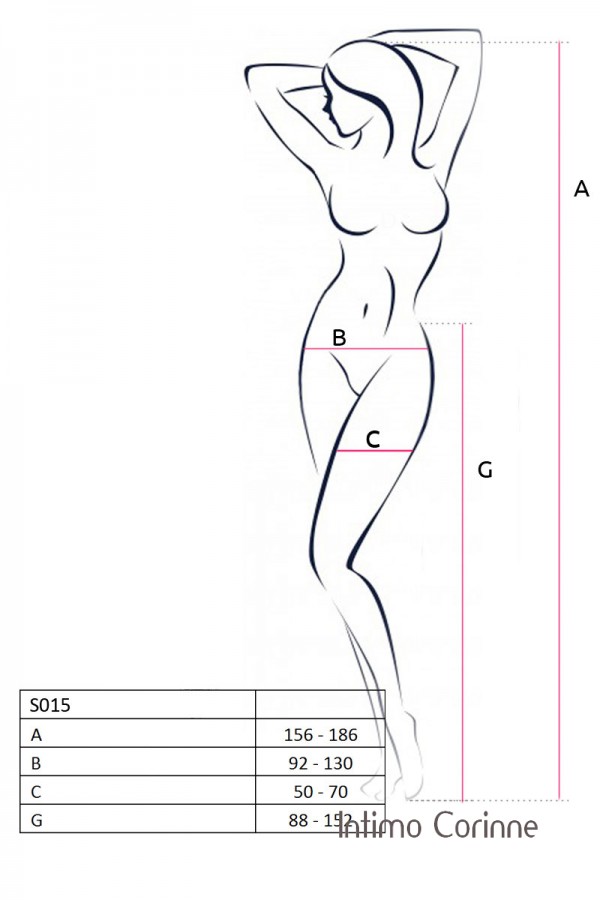 Collant a rete con disegno slip e motivo traforato sulle cosce effetto giarrettiere. Aperto al cavallo.