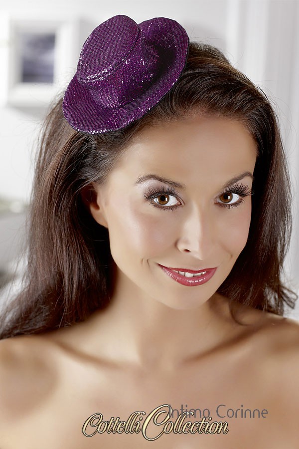 Originale cappellino in tessuto brillantato. Nella parte sottostante è posizionata una clips per il fissaggio ai capelli.