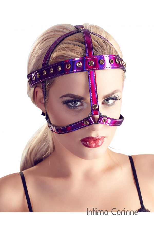 Imbracatura facciale color fucsia metallizzato con strass.