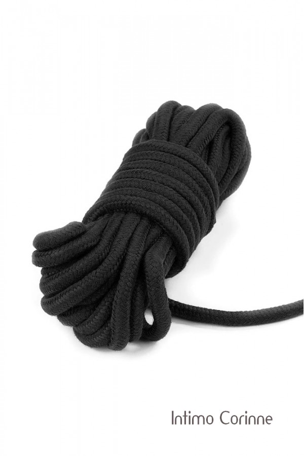 Con questa morbidissima corda in cotone nero giapponese, non devi essere un esperto per goderti il ​​piacere del gioco bondage. E' l'ideale per coloro che vogliono semplicemente legare mani e piedi del proprio partner, ma abbastanza lungo e abbastanza resistente per coloro che vogliono cimentarsi nel bondage con corda in stile shibari (stile tradizionale giapponese). La corda è spessa 8 mm e lunga 10 metri, è robusta ma molto morbida al tatto e non sfrega sulla pelle. Realizzata in cotone di alta qualità.