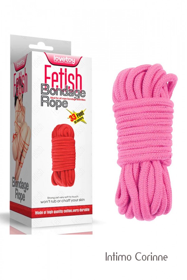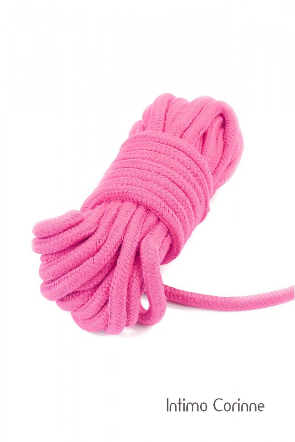 Con questa morbidissima corda in cotone rosa giapponese, non devi essere un esperto per goderti il ​​piacere del gioco bondage. E' l'ideale per coloro che vogliono semplicemente legare mani e piedi del proprio partner, ma abbastanza lungo e abbastanza resistente per coloro che vogliono cimentarsi nel bondage con corda in stile shibari (stile tradizionale giapponese). La corda è spessa 8 mm e lunga 10 metri, è robusta ma molto morbida al tatto e non sfrega sulla pelle. Realizzata in cotone di alta qualità.