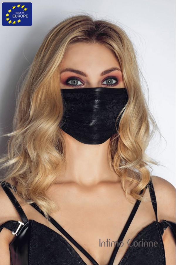 Elegante mascherina nera realizzata con uno strato di tessuto coprente ricoperto in pizzo floreale e cinghie elastiche per le orecchie che garantiscono una perfetta vestibilità. Non è D.M. nè D.P.I.