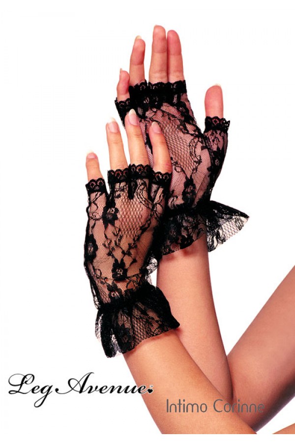 Guanti corti senza dita in pizzo. Taglia unica O/S.