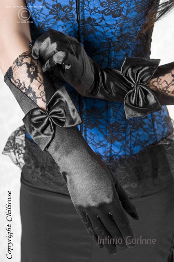 CHILIROSE: guanti medi in raso con fiocco e pizzo.
