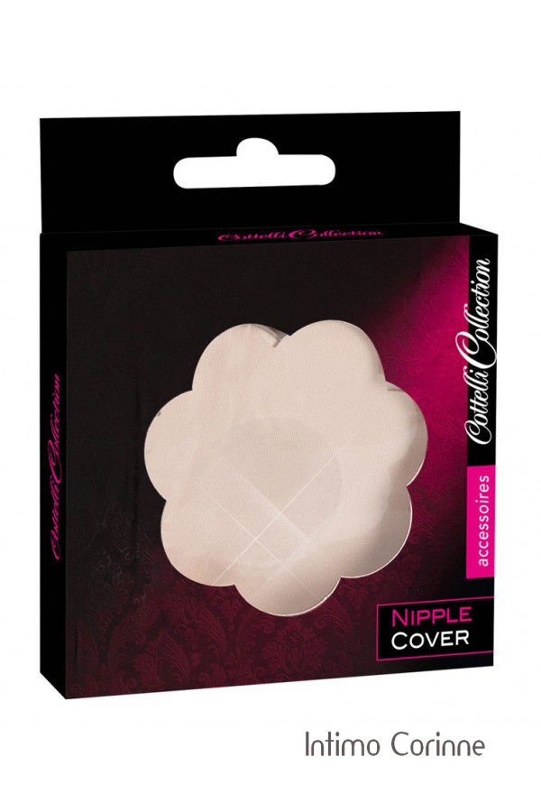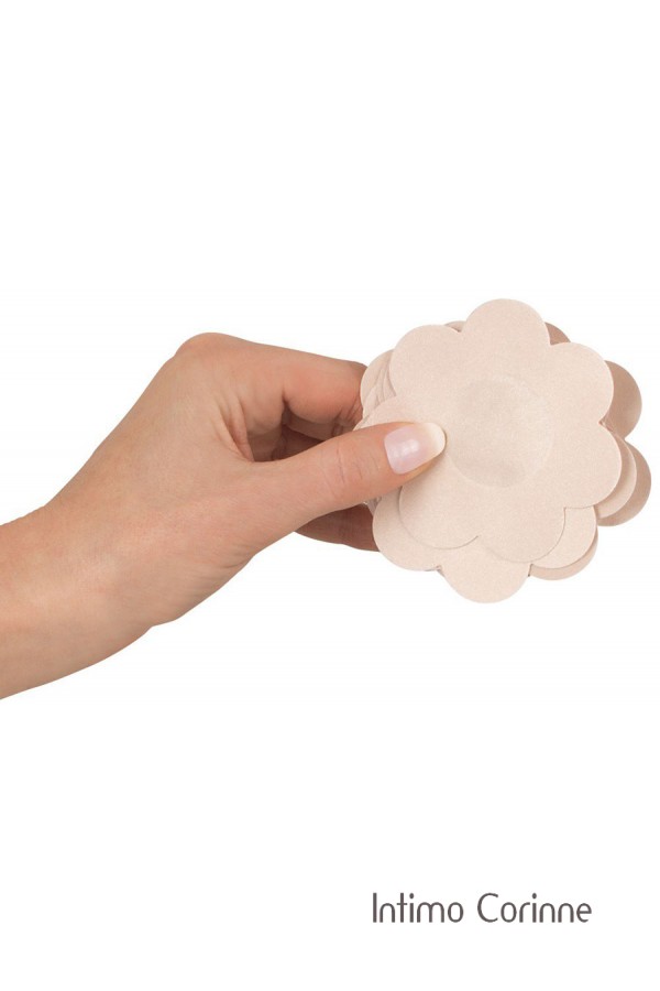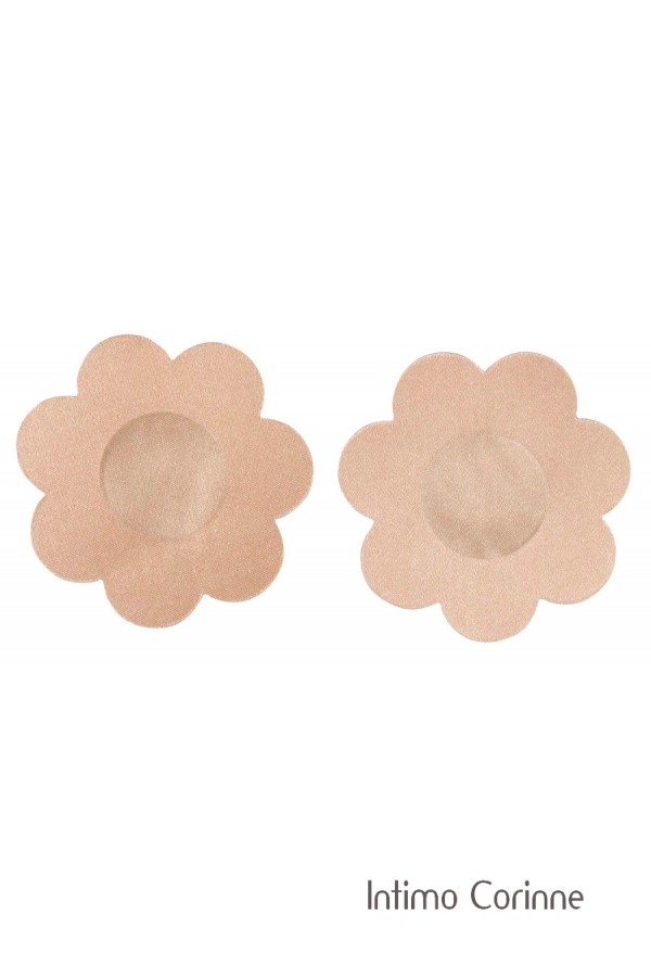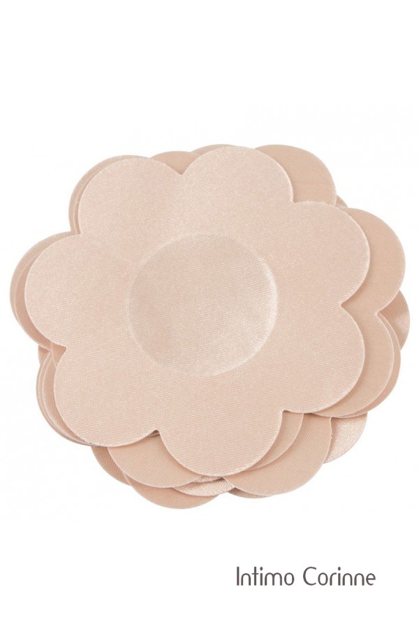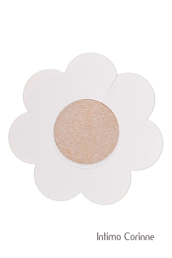 Adesivi color pelle da posizionare sopra i capezzoli realizzati in tessuto con un sottile strato di silicone. Una soluzione pratica e discreta per nascondere efficacemente capezzolo ed aureola. A forma di fiore, Ø 7 cm. 6 coppie.