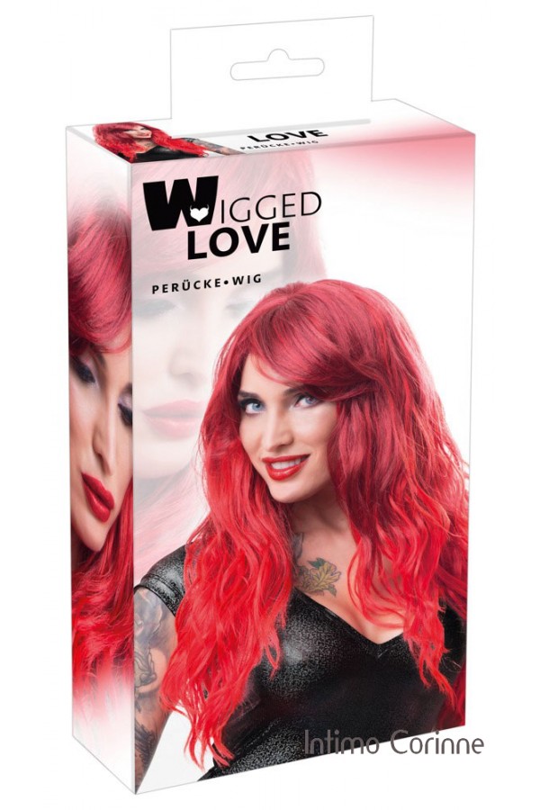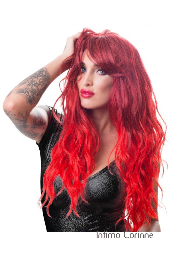 Parrucca lunga rossa con frangia laterale.