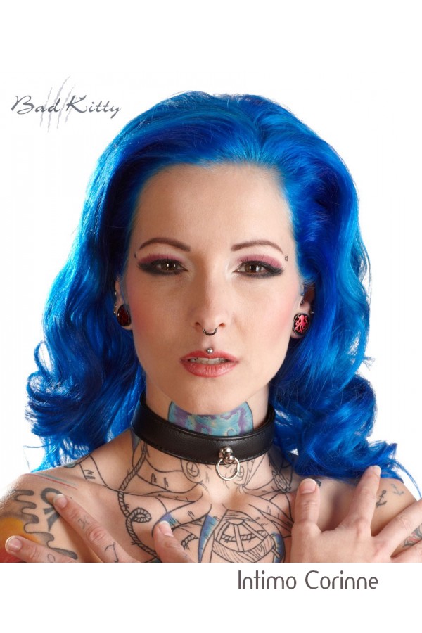 Collare in similpelle a due strati con un piccolo anello metallico al centro.
