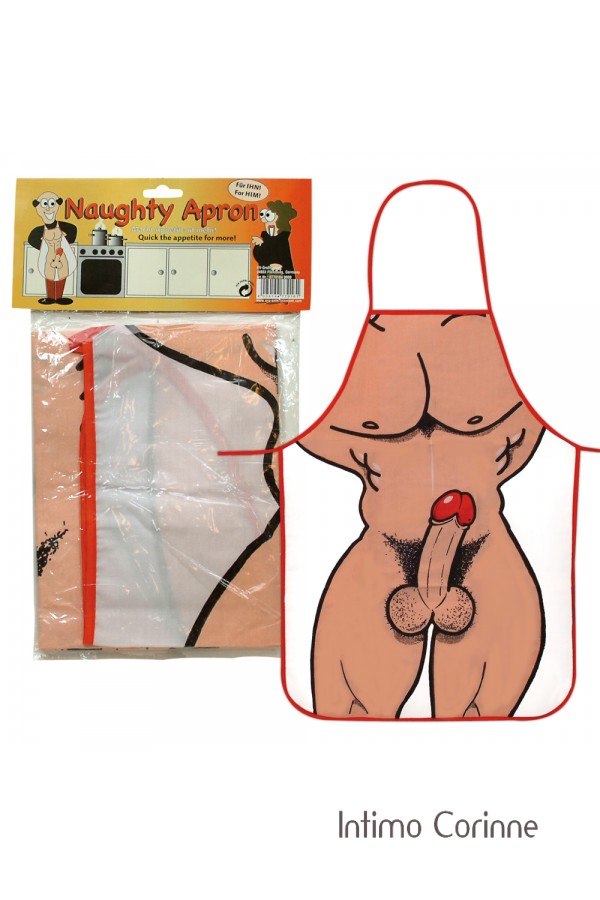 Simpatico grembiule raffigurante un corpo maschile nudo in stile cartone animato.