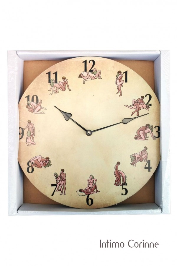 Simpatico orologio con meccanismo al quarzo raffigurante alcune immagini tratte dall'antico testo indiano Kamasutra posizionate in ogni ora. Sfondo beige antichizzato. Diametro quadrante 33 cm.