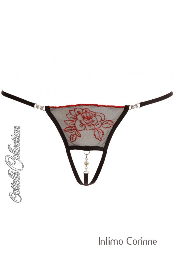 Perizoma con strass e rosa ricamata.